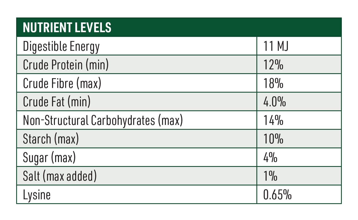With our high fibre, low-NSC pellet, Calm Horse is a great match for horses needing a cool energy source. Calm Horse is a nutritionally balanced feed with added vitamins and organic minerals, ideal for horses and ponies in light to moderate work in any discipline.