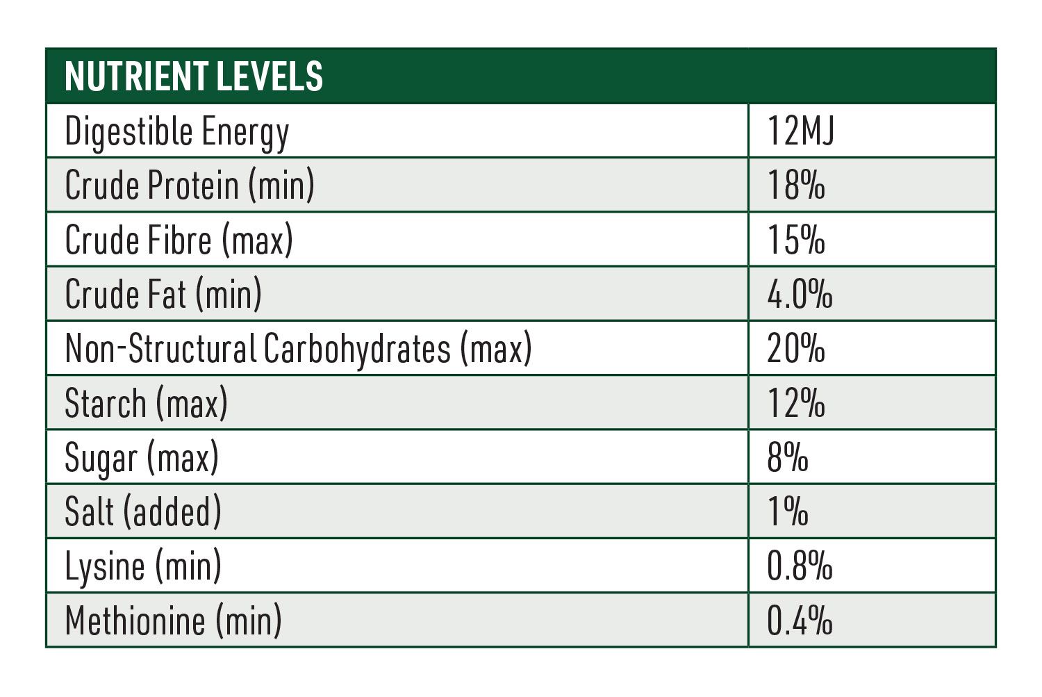 Equine Plus contains controlled sugar and starch (NSC) levels as research has shown an association between high NSC levels in mares and increased risk of Developmental Orthopaedic Disease (DOD) in their offspring. Equine Plus promotes healthy development of foals by ensuring both mares and foals are receiving optimal nutrition.